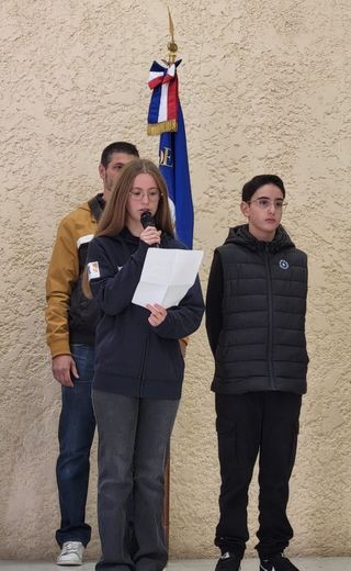 Moment particulièrement émouvant : la lecture par Lisa, élève au LEAP, d’une lettre écrite par un « poilu » de 1914 originaire de la région, adressée à sa famille. Cette lettre, redécouverte, est celle d’un parent de Mme Marquié, Julien Combes malheureusement tombé en 1917. Sa lecture a plongé l’assemblée dans l’intimité du conflit, offrant une voix authentique à ceux que la guerre a fait taire.
